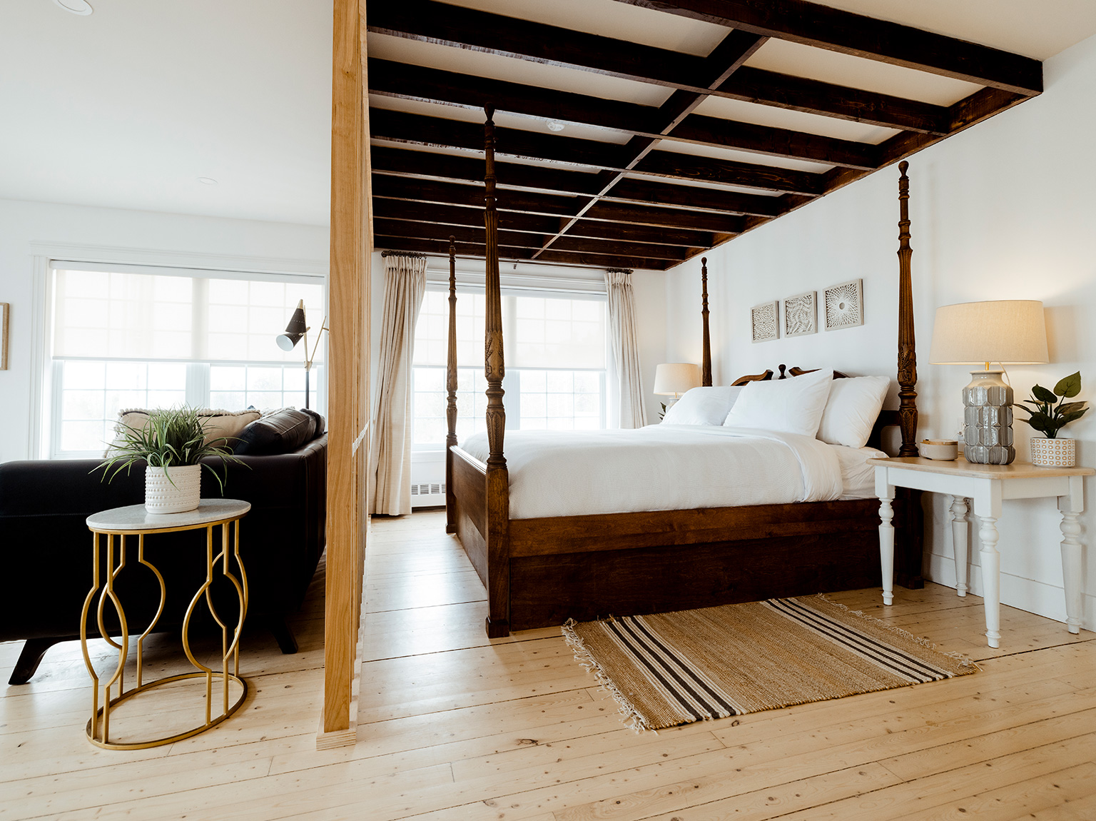 Perched above our main building overlooking the spa grounds, the Bayview Suite is a luxurious hideaway for the discerning wellness traveler. With superb finishes and warm natural light, this unique space offers a king size bed, personal fireplace, walk-in closet, two large sitting areas, and exquisite views.